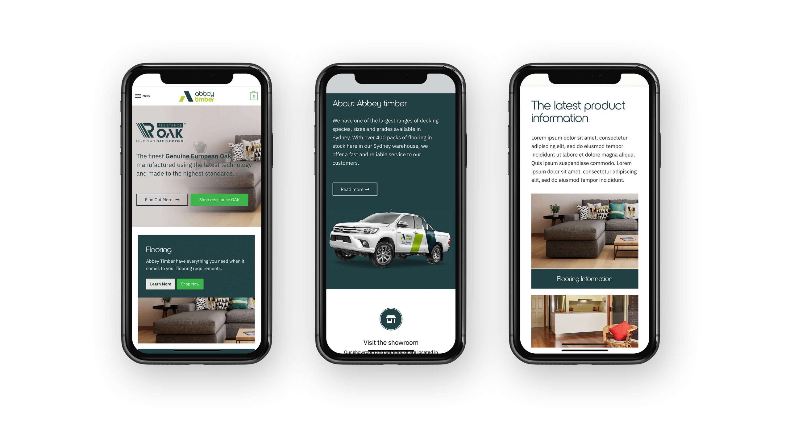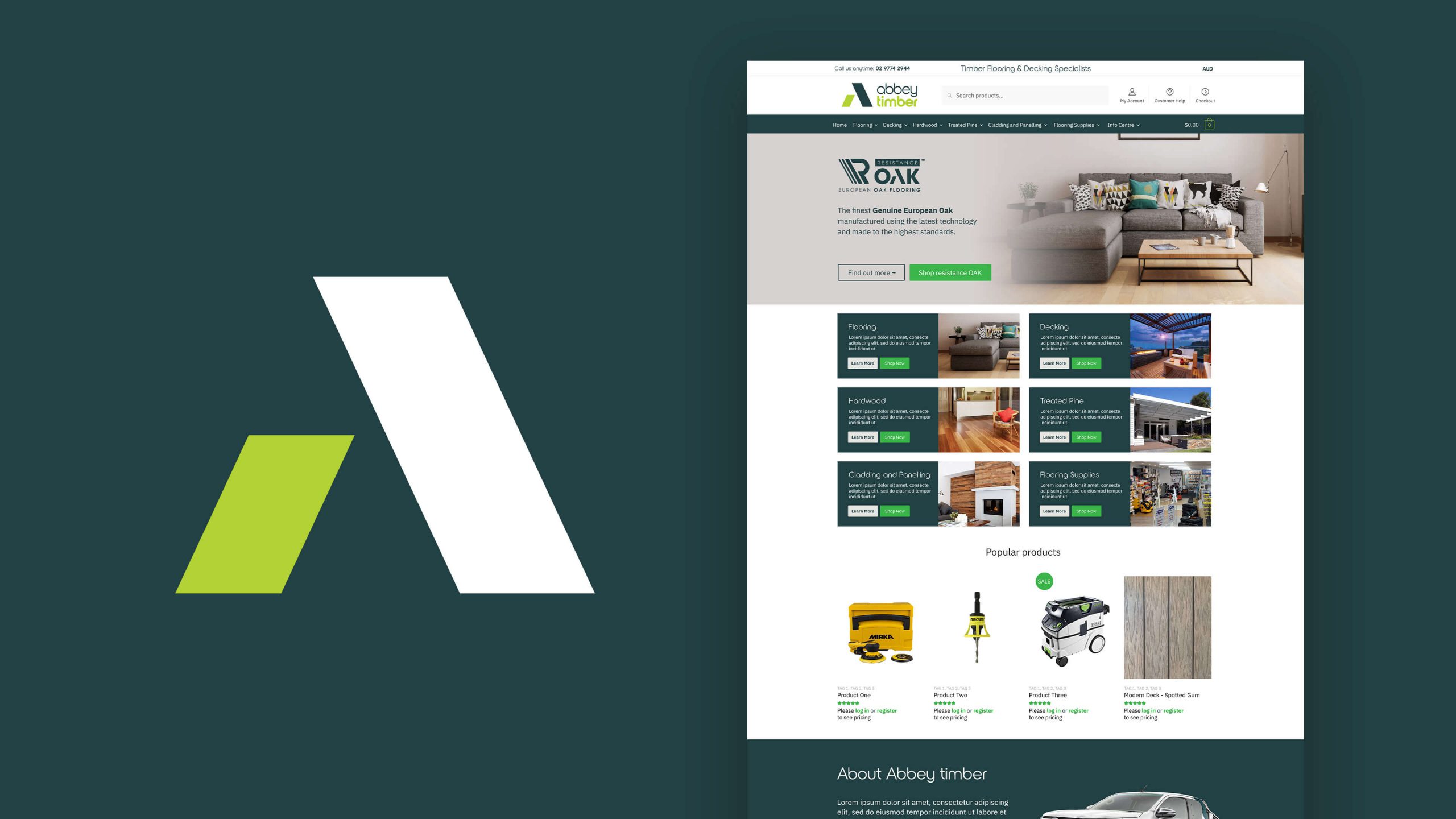 The new branding reflects a trade-focused colour palette and incorporates timber panel elements into the ‘A’ for Abbey. This branding has been applied across signage, vehicles, uniforms, and marketing collateral. Custom packaging was designed for their timber lines, and a microsite was developed to showcase their wholesale offerings. Their main e-commerce website continues to evolve, supporting their expanding product range and online presence.