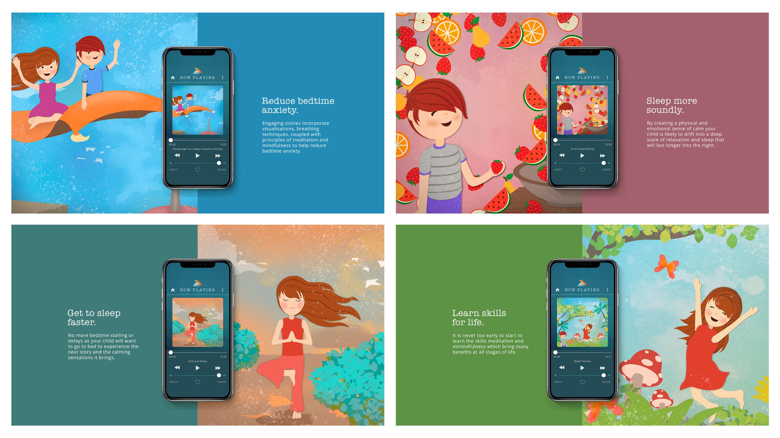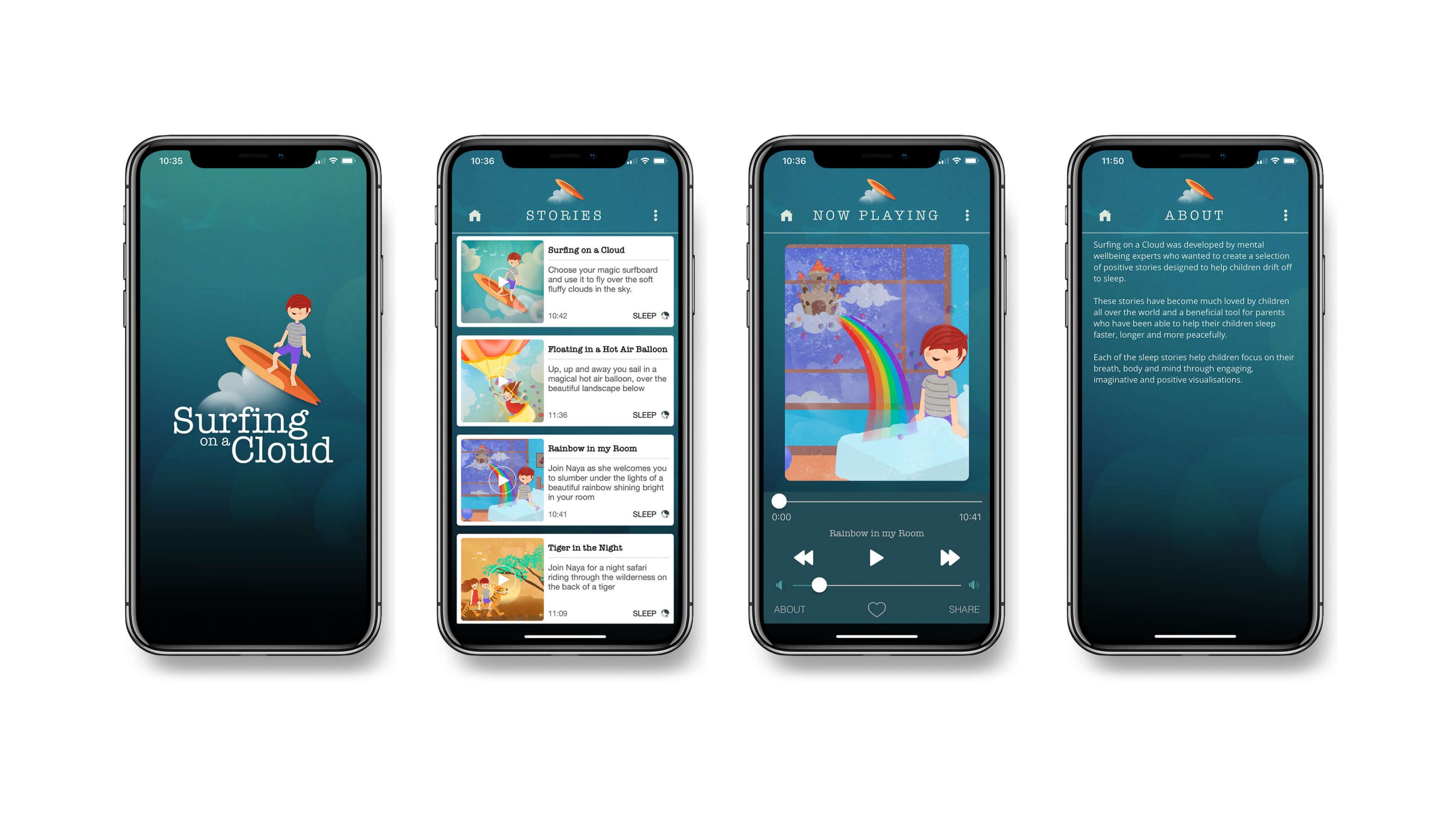 Surfing on a Cloud is a children’s mediation app featured on the apple app store designed to help anxious children sleep using storytelling, breath work and colour therapy.